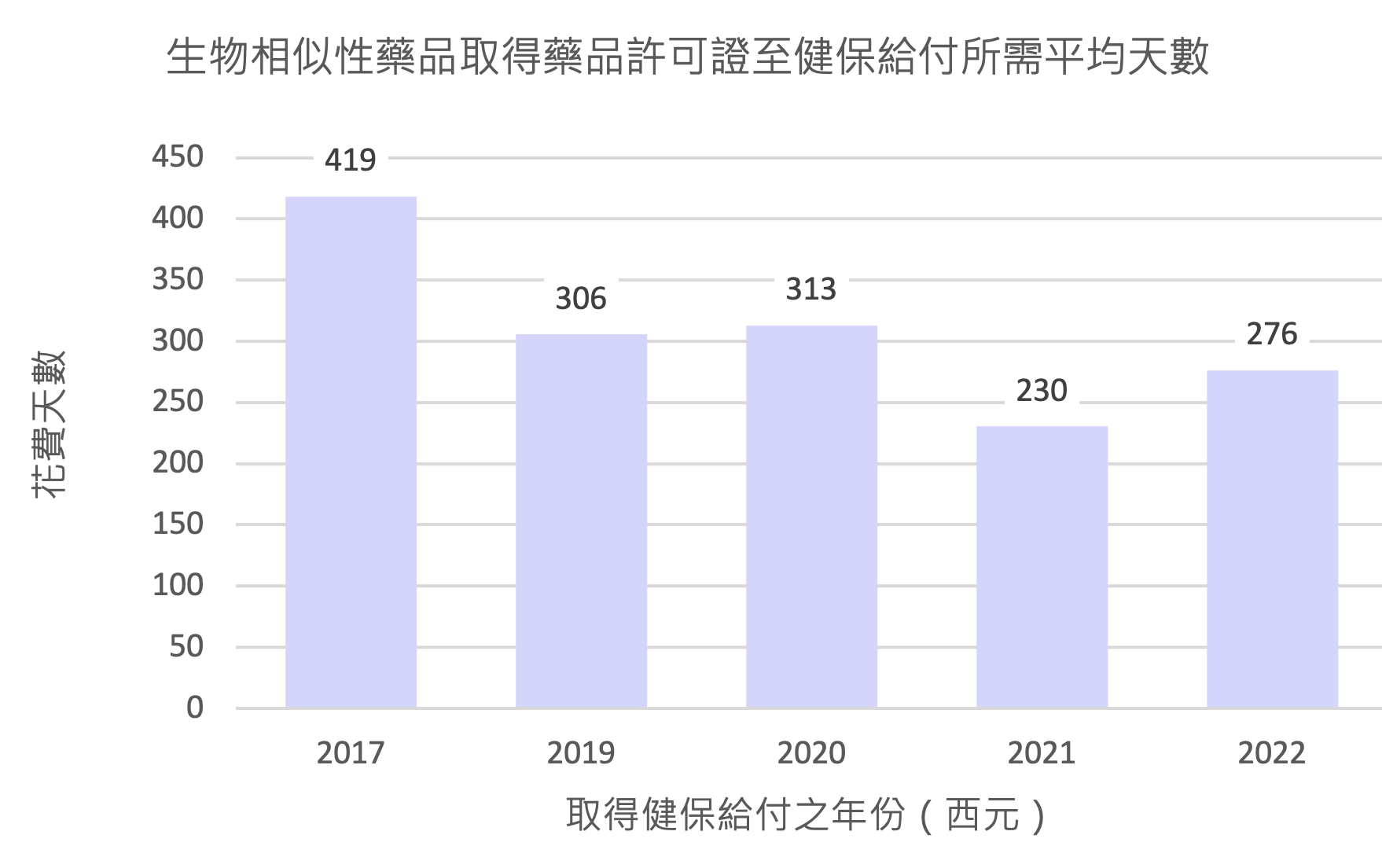 圖1. 台灣生物相似性藥品歷年取得健保給付所需平均天數)