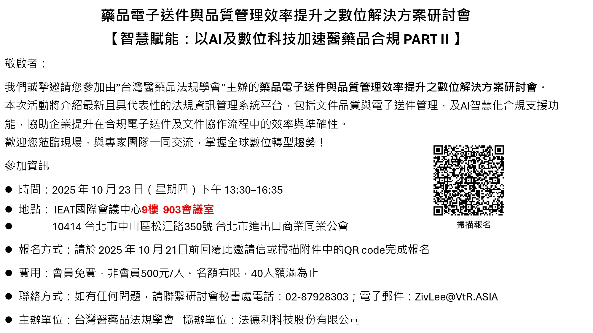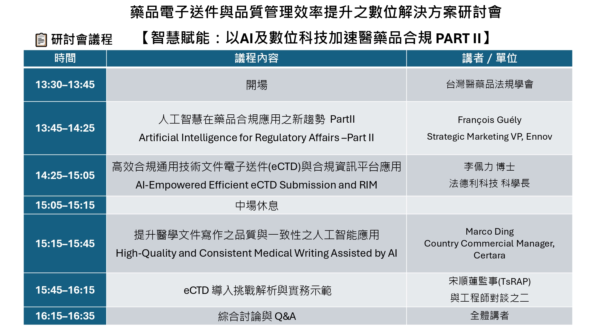 藥品電子送件與品質管理效率提升之數位解決方案研討會