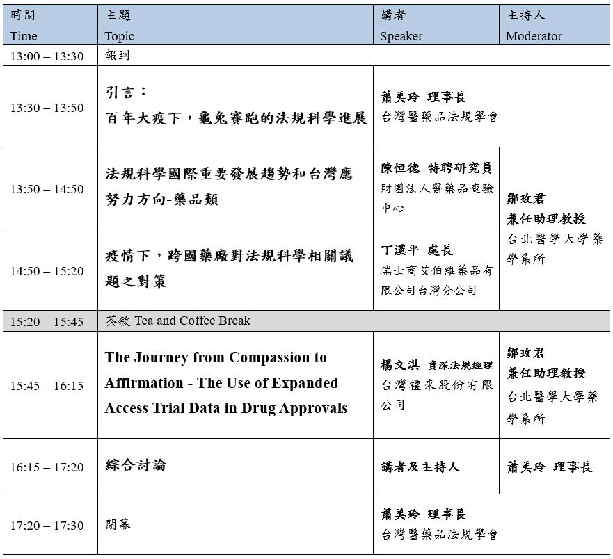 「百年大疫下,以公私夥伴關係共創新局的國際醫藥品法規科學最新進展」