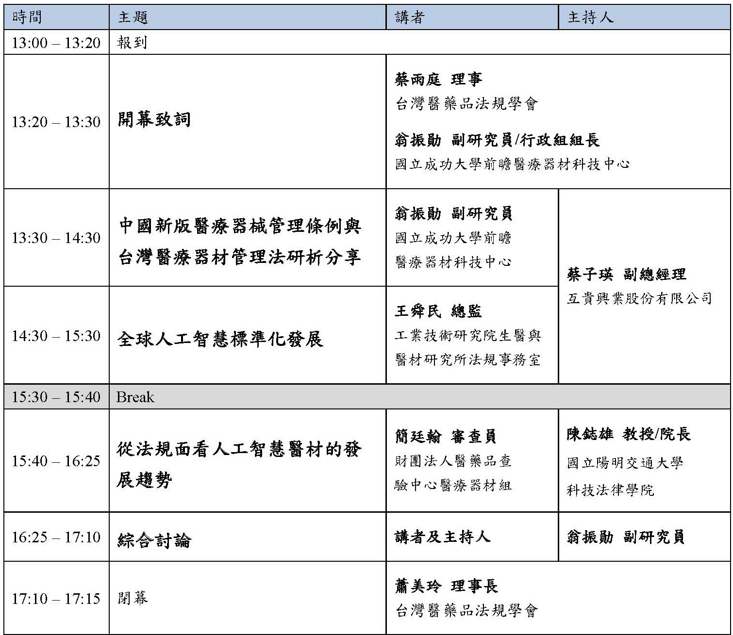 ※ 本學會保留講者及議程調整之權利,請以官網最新議程更新為準。