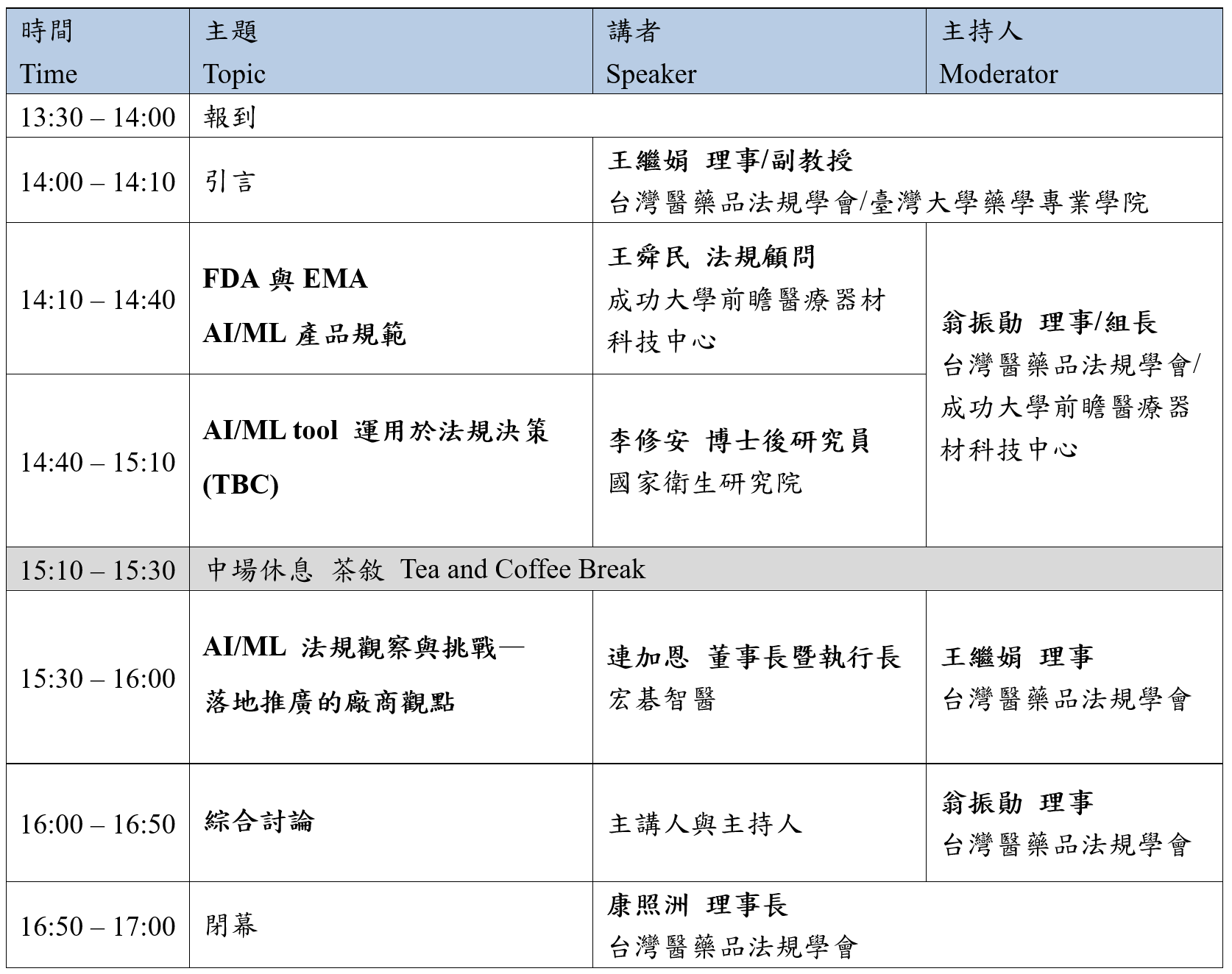 ChatGPT 問世一年多,AI 引導工作型態的轉型逐漸發酵,醫藥產品的上市,如何善用人工智慧,這個強大的工具?同時,引領國際法規走向的美國FDA及歐盟EMA,是如何規範AI/ML的相關產品呢?而,台灣科技產業進入生醫領域的法規策略是如何規劃呢?